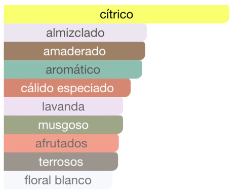 - Notas de salida: Mandarina, cidra, cardamomo, pimienta rosa.