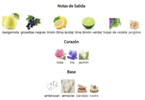 • Notas de Salida: Limón, Bergamota, Manzana, Piña, Pimienta Rosa