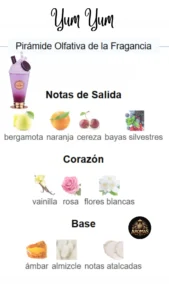 El Armaf Yum Yum es una fragancia moderna, dulce y envolvente que celebra la feminidad con un toque juguetón y sofisticado. Ideal para quienes disfrutan de aromas gourmand irresistibles, combina notas cálidas y cremosas con un fondo elegante y duradero.