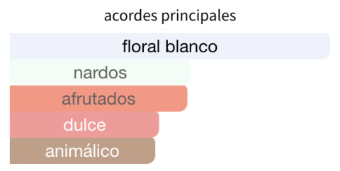La fragancia se abre con notas de naranja y flor de azahar, aportando un inicio fresco y dulce. A medida que se desarrolla, se adentra en un bouquet floral compuesto por jazmín y tuberosa, creando un aroma seductor y femenino. Las notas de base son vetiver y pachulí, que añaden profundidad y una sensación de misterio y sensualidad al perfume.